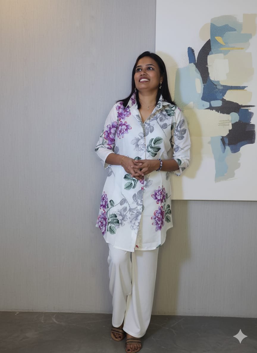 DESIGNER COTTON DIGITAL PRINT WORK TOP WITH PALAZZO WHITE 50.00 AED
