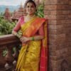 * Border: Rich Pink Brocade with Zari Weaving