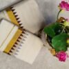 Elevate your ethnic wardrobe with this classic Kerala Kasavu Mundu & Veshti Set, crafted in premium cotton for all-day comfort. The elegant cream base is complemented by a rich gold zari border and green temple-design edging, giving it a timeless traditional finish.