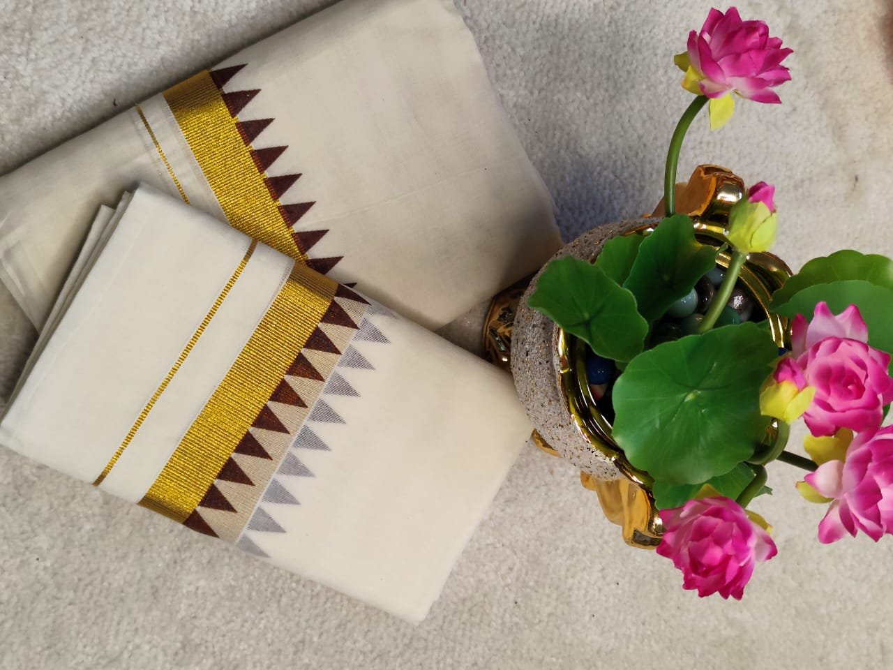 Kerala Kasavu Mundu & Veshti Set – Traditional Cream with Gold Border